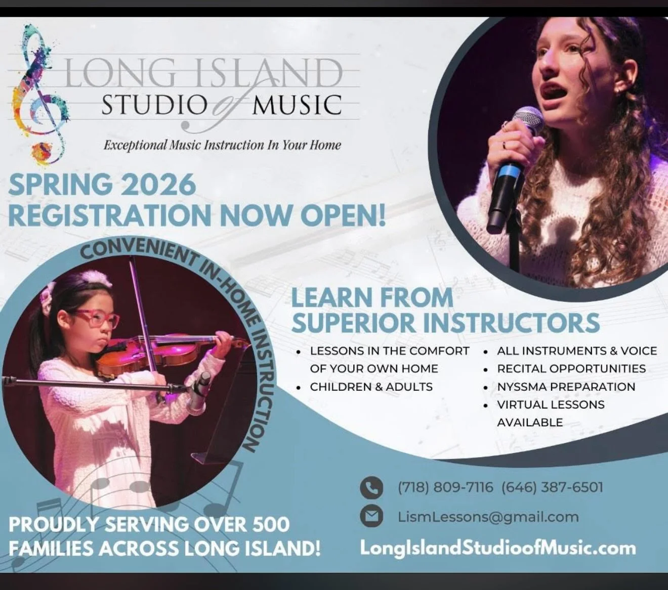 At the Long Island Studio of Music®, our primary goal is to nurture a profound love, appreciation, and enjoyment of music. Through our music instruction and performances, our students develop their musical skills and gain confidence, discover their passion and creativity, and develop a deeper connection with music.