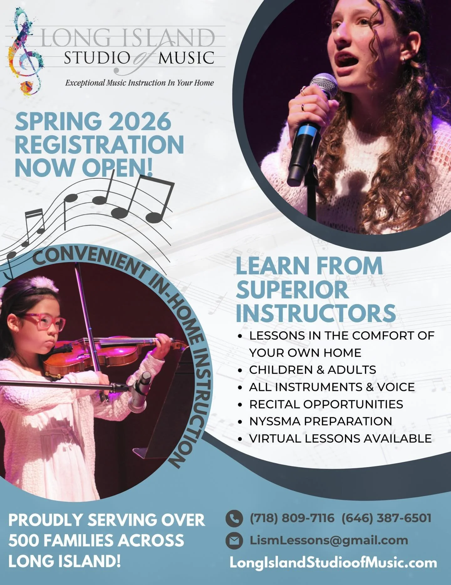 At the Long Island Studio of Music®, our primary goal is to nurture a profound love, appreciation, and enjoyment of music. Through our music instruction and performances, our students develop their musical skills and gain confidence, discover their passion and creativity, and develop a deeper connection with music.